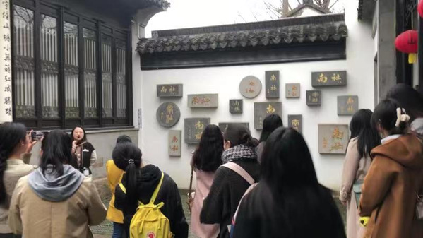 活动伊始,全体党员在南社纪念馆前以党旗和党徽为见证,宣誓“强国复兴有我,我是党史记录人”。随后在讲解员的带领下,全体党员参观了南社纪念馆多个主题展厅。第一展厅为“南社风云”主题,主要由南社荣耀、南社简史、南社雅集3部分组成,展示了南社从第一次雅集举行以后的发展、影响和历次雅集。第二展厅为“南社群贤”主题,主要介绍南社三杰的生平事迹和在其他领域有着杰出贡献的南社成员。第三展厅为“南士共进”主题,这一展区以大量空间展示了南社成员与中国共产党人之间的情谊。第四展厅为“承前启后”主题,展示着南社成员后裔中的许多杰出代表。参观完南社纪念馆,党员同志们内心充斥着对前人先辈的敬仰之情,深感自身身处建设社会主义现代化强国的新时期,更应该在发展中贡献力量。