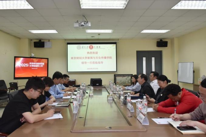 4月29日下午,南京财经大学新闻与文化传播学院院长刘泱育带领班子成员及系主任一行到学院就学院发展、专业建设以及人才培养等情况进行调研交流。学院班子成员以及相关系主任和学工团队等参加了此次调研活动。会议由曹炜院长主持。