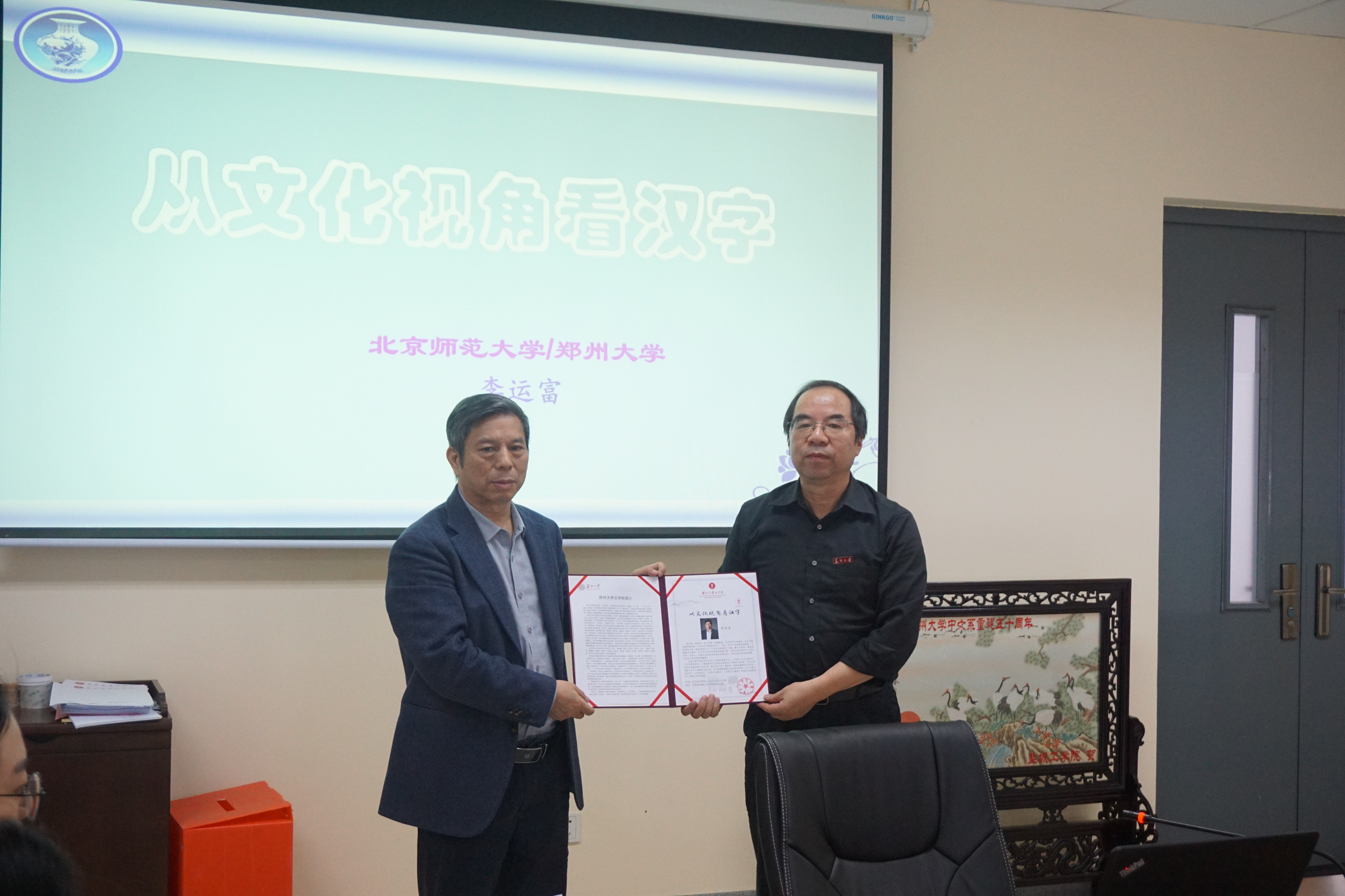 2025年5月9日上午,著名文字学家,教育部“长江学者”特聘教授,北京师范大学教授,郑州大学特聘首席教授,国家语委“中华汉字文明研究中心”主任李运富教授应邀莅临草榴 ,以“从文化视角看汉字”为主题,为师生带来一场兼具学术深度与文化厚度的专题讲座。