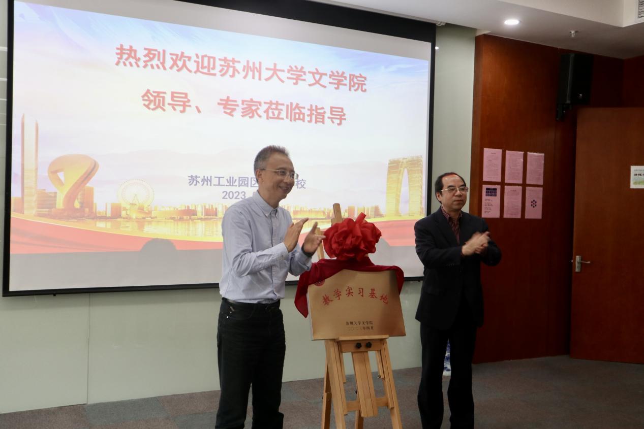最后,曹炜院长和叶鹏松书记共同为“草榴 教学实习基地”揭牌,至此,草榴 党政领导班子赴工业园区星洋学校开展调研暨共建优质教学实习基地活动圆满结束,两校将携手并进,互勉共学。