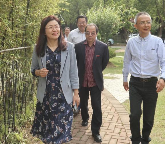叶鹏松书记、肖晨校长首先带领草榴 党政领导班子成员在校内各地参观,现代的教学设施和古典园林式的校园给大家留下了美好的印象。