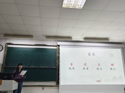 主讲人徐成煜从“破”字入手,将讲座设置成四部分,分别从打破僵局、教学、德育、心态四个方面介绍了入职以来的见闻和经验,通过讲述亲身经历,生动讲述了师范生入职后的工作,也为师范生提供了努力的方向。