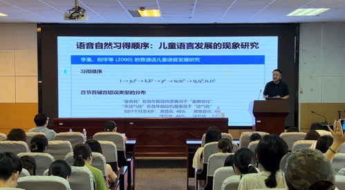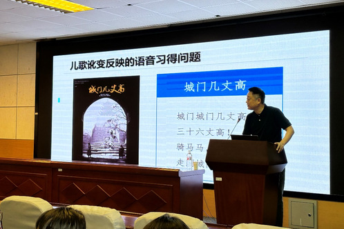 在随后的讲座中,叶军教授以儿歌《城门几丈高》中的讹变问题入手,对习得顺序和习得难度进行了区分,并从行为难度、认知难度两个方面探讨了二语语音习得顺序的理据和证据。行为难度涉及动作的自然性、便利性以及过程的复杂性,而认知难度则受到语音范畴的可辨性和发音行为的可知觉度影响。叶教授指出,语际分布与二语习得难度存在着密切联系,并对“洋腔洋调”的产生原因提出了独到而又深刻的见解。