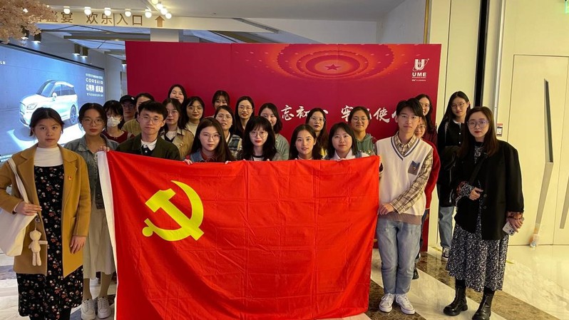 2021年10月23日下午四点半,草榴 研究生专硕第一党支部开展“四史”教育电影课主题党日活动,20级与21级党员同志一同在UME影城苏州金鸡湖店观看红色革命主题电影《永不消逝的电波》。