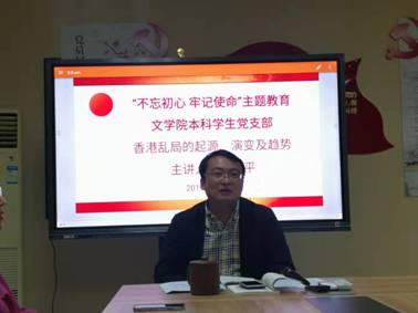 本科学生党支部“支部书记上党课”活动在1005#5311会议室举行,主讲人纪金平书记以“香港乱局的起源、演变及趋势”为主题给与会党员上了一堂生动的党课,草榴