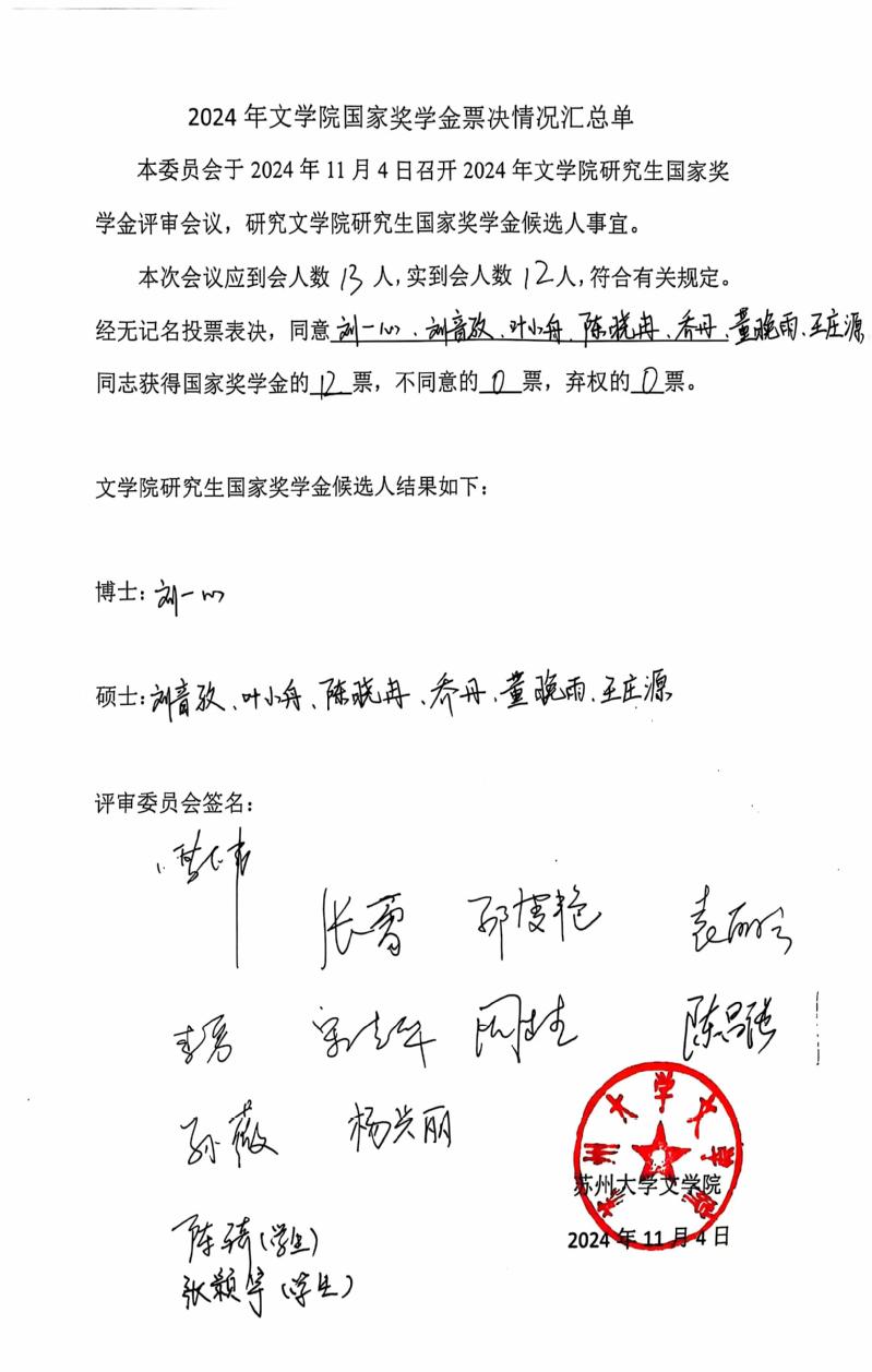 根据《关于做好2024年研究生国家奖学金(第二批)评审工作的通知》工作要求,遵循平等原则、回避原则、公正原则、保密原则,此次评审由学生个人主动申请提交材料,经草榴 2024年度国家奖学金评审委员会根据学院评定条例评审,现将结果公示如下: