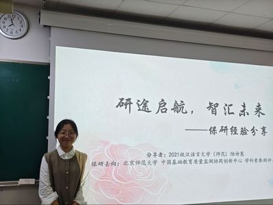 主讲人陆诗蕙以“语文学科素养测评与提升”为主题梳理保研时间线。她以中央民族大学、南京师范大学和北京师范大学为例介绍保研个人情况。最后她从申请阶段和面试阶段两方面入手,介绍如何进行信息收集、材料准备和专业知识的提前准备,给出了个人的建议和经验。