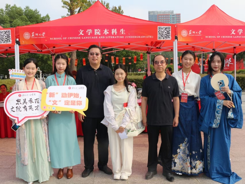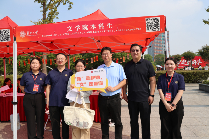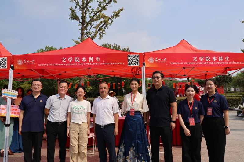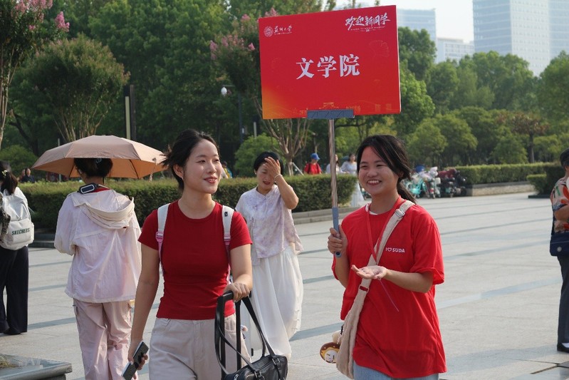 曹炜院长早早来到迎新现场,详细了解报到情况,看望在酷暑中工作的师生、志愿者们,并对整体组织工作予以肯定。曹炜院长特别关注到,汉语言文学(拔尖创新班)的张忆文是一名“苏二代”,在与张忆文及其家长的交流中,学生家长表示:“送孩子来当年读书的地方,既亲切又激动。希望她在这里学有所成,走出属于自己的精彩之路”。