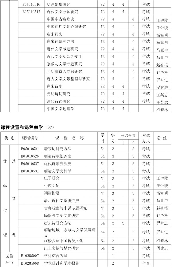 中国古代文学博士生培养方案