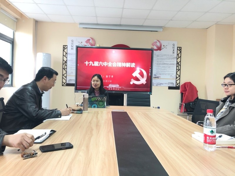 孙宁华书记分三个部分详细解读了党的十九届六中全会精神。第一部分提到中国共产党创立100年,十九届六中全会总结了这100年的奋斗经验;第二部分具体介绍了十九届六中全会总结的中国共产党百年奋斗的四个重大成就、五大意义、十大历史经验(即十个“坚持”)以及四个“必须”;第三个部分,孙宁华书记分享了自己的感受并和支部党员进行了一些交流,她提到新冠肺炎疫情对于世界各国都是考验,可是从应对情况来看的话,无疑中国模式被证明是最成功的。最后,孙书记特别强调了十九届六中全会对于明年即将召开的党的二十大以及实现第二个百年奋斗目标的重要意义,并要求党员同志时刻牢记“中国共产党是什么、要干什么”这个根本问题,始终谦虚谨慎、不骄不躁、艰苦奋斗,以咬定青山不放松的执着、行百里者半九十的清醒奋力前行,为实现中华民族伟大复兴的中国梦而不懈奋斗。