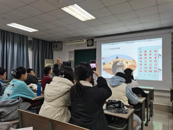讲座结束后,王教授结合自己主编的《苏州古石桥》一书,引导同学们要以桥为“桥”,深入探索相关的文化知识。本次“苏州桥联赏析”活动不仅是一次学术讲座,更是一次深入体验苏州文化的机会,让同学们对苏州深厚的文化底蕴有了更加全面和深刻的认识。活动在同学们热烈的掌声中圆满结束。
