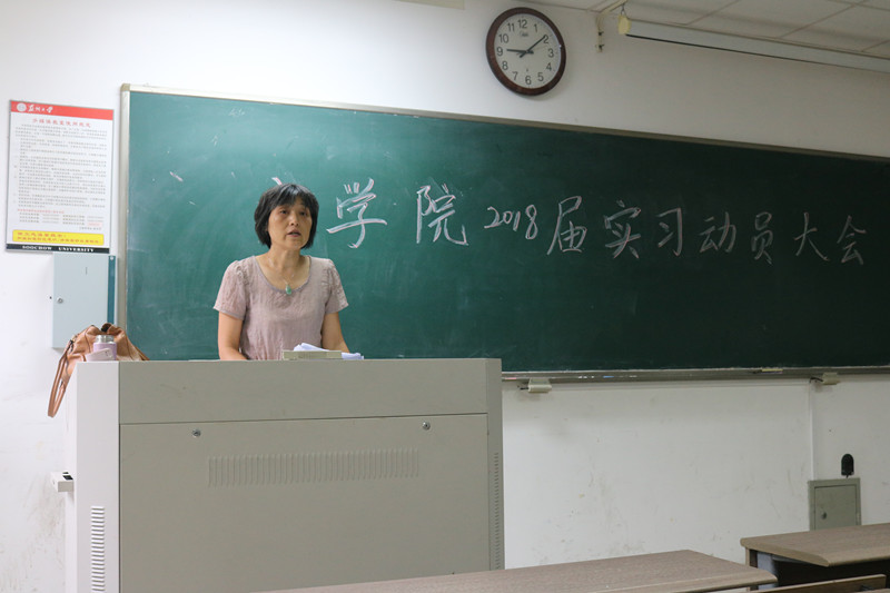 缪葵慈老师对前面的讲话进行了总结,并宣读了各实习点学校指导教师名单。她对毕业生在实习过程中应当注意的细则进行了归纳和强调。缪老师介绍了实习的意义,并指出“这是一个具有师范性质、兼具综合性和实践性的社会体验过程”,对于课堂试教、班主任职务以及材料上交等事宜也作出了详细说明。至此,草榴 2018届师范班毕业生实习动员大会圆满结束。