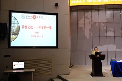 接下来是2023级学生代表宋雨田同学进行发言。儿时学校与苏大天赐庄校区隔街而望的经历在宋雨田同学心中埋下了一粒种子,并在踏入苏大的今日长成了一棵参天大树。作为新生,她对大学生活充满了憧憬也表明了将以严谨踏实、勤恳认真的态度,行走在求学的道路上;以求知若渴、永不满足的姿态,探求语言文字的奥秘。