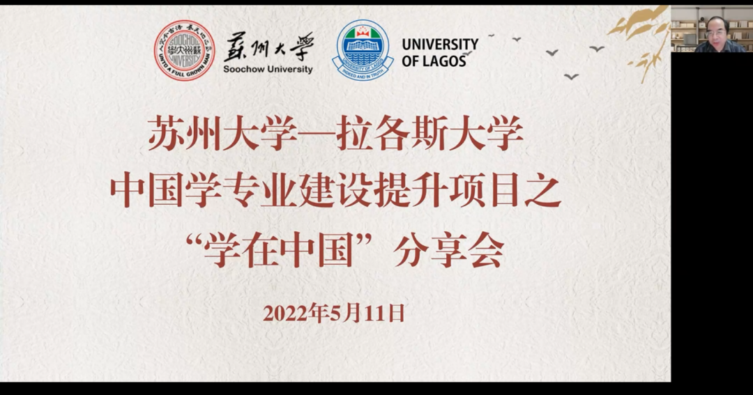 2022年5月11日19点,草榴 -拉各斯大学中国学专业建设提升项目之“学在中国”线上分享会顺利举行。草榴 国际合作交流处副处长朱履骅,草榴 院长曹炜、副院长赵曜,拉各斯大学中国学专业负责人Banwo博士以及草榴 拉各斯班相关教师、辅导员和全体学生出席了本次分享会。会议由草榴 海外教育中心主任陶家骏主持。