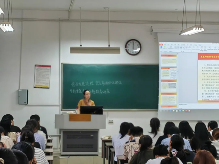 接着,第二部分为“党员发展流程,党支部组织建设与新生支部教育”专题。其中,钱继云老师重点强调,身为党员要严格要求自己,发挥党员的先锋模范作用。