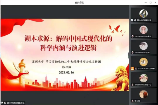 在思想学习教育活动的组织上充分融汇学院、学校、地方特色,增强思想引领形式的吸引力与感染力。小到部门例会、组织内部建设,大到与各兄弟院校联动,面向全校、辐射社会的各项活动实践,都是一节节围绕党的二十大精神与主题教育专题的“思政课”,把党对青年的教育关怀、成长要求有机地融入工作中,引导研究生增强对党的政治认同、思想认同、理论认同、情感认同。