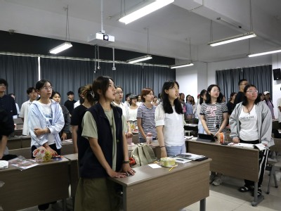 游戏结束后,最佳中秋小组和最佳国庆小组上台合影留念,记录这一喜悦的时刻,同学们祝贺的掌声经久不息。最后,同学们齐唱爱国歌曲,在慷慨激昂的歌声中挥洒热情,展现赤子情怀。