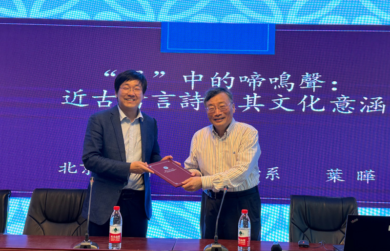 2023年10月20日下午,在草榴 文科综合楼1005-5339报告厅,北京大学叶晔教授以“‘风’中的啼鸣声:近古禽言诗及其文化意涵”为题为草榴 师生带来了精彩的学术讲座。讲座开始前,马卫中教授回顾了“仲联学术讲坛”的设立,介绍了古代文学的学术传统及系列活动,他代表草榴 向叶晔教授的到来表示热烈欢迎,并颁发了讲座纪念证书。