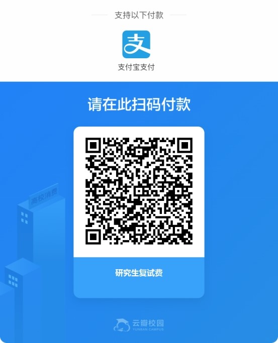 1、缴纳复试费:80元/人。请在复试前通过支付宝扫码缴费。