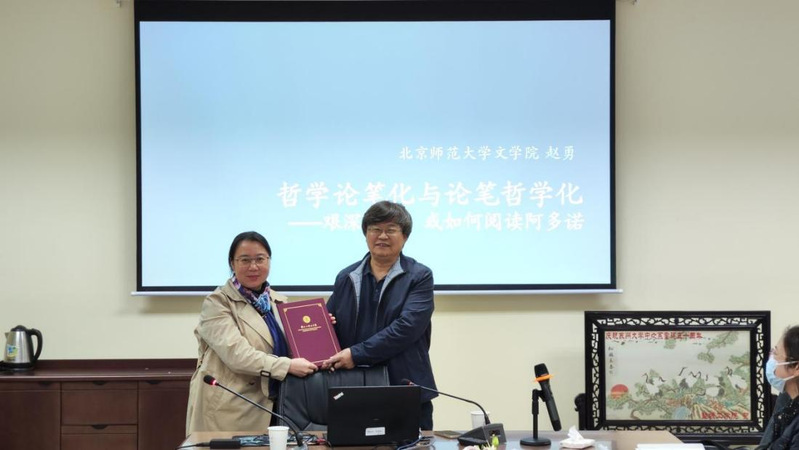 2023年11月11日下午,在草榴 文科综合楼1005-5335会议室,北京师范大学草榴 教授、中国赵树理研究会副会长赵勇先生以“艰深晦涩,或如何阅读阿多诺”为题,为草榴 师生带来了一场思想深刻、精彩纷呈的学术讲座。