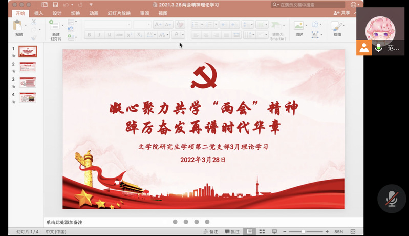 在2022年全国两会上,习近平总书记把握新的时代方位,回顾新时代党和人民奋进历程,首次鲜明提出“五个必由之路”的重大论断,阐述我国发展仍具有的战略性的“五个有利条件”,为全党全国各族人民奋进新征程指明前行道路,具有重大的历史意义和现实指导意义。3月28日,草榴 学硕第二党支部以腾讯会议的形式,开展了“凝心聚力共学两会精神 踔厉奋发再谱时代华章”理论学习活动,支部全体党员参加了本次会议。