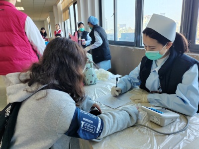 活动当天天气寒冷,但丝毫没有影响同学们奉献爱心的热情。献血活动正式开始之前,志愿者们便早早地来到公体楼,紧锣密鼓地做好前期准备。中午11点,前来献血的学生们慢慢排起长队,在志愿者和血站工作人员的引导下井井有条地进行登记、体检、采血化验。医务人员认真核对献血者的身份信息,询问其健康状况,并指引采血化验达标的同学依次前往献血车献血。