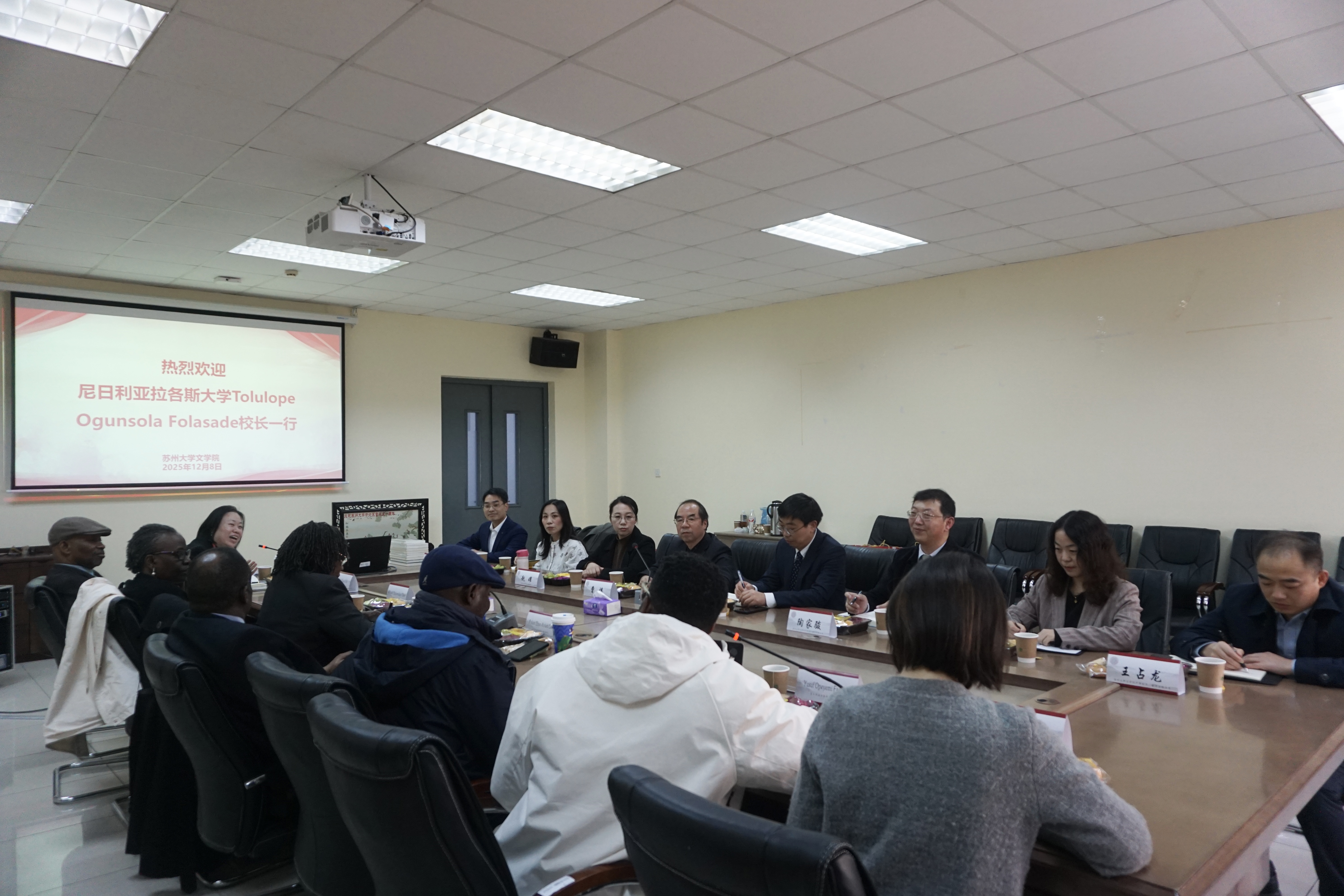 曹炜对尼日利亚拉各斯大学一行的到来表示欢迎。他指出,草榴 是在东吴大学文学系基础上发展起来的,与草榴 办学历史一样悠久。截至目前,学院在优势学科发展、人才队伍建设、招生录取、在院师生的质量和规模、科研成果等方面都取得了显著的成果。教学和科研开展有序,持续向好发展,学院连续五年获得学校高质量发展综合考核第一等次。希望未来双方能够深化交流互动,依托各自特色,进一步在人才培养方面加强合作。