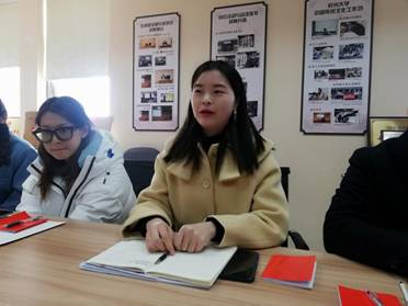 活动第一项议程为支部书记季鹏飞同志做年度工作汇报。在汇报中,季鹏飞同志向艾立中教授与全体支部党员汇报了开学以来支部的组织建设与工作进展情况。她围绕“定期召开党员大会、支委会,积极组织开展党课”、“常规化民主生活会、理论学习活动,深入开展党员教育”、“建立完善支部考勤制度、细化支委会成员分工”和“查摆问题及整改措施”四个方面的内容,展示了支部一学期以来的工作成果、仍然存在的问题以及未来的努力方向。