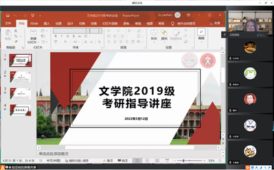 5月11日至13日,草榴 2019级考研指导讲座于线上顺利举行。本次讲座分为三场,分别针对汉语言文学(基地)、汉语言文学(师范)及汉语国际教育三个专业。草榴 院长曹炜、党委副书记阴浩出席了讲座。