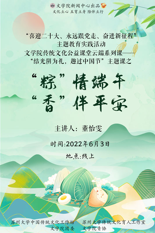 “喜迎二十大、永远跟党走、奋进新征程”主题教育实践活动传统文化公益课堂云端系列课——“结光阴为礼,趣过中国节”主题课之“粽“情端午,“香”伴平安