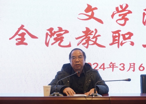 除此之外,曹院长还特别强调了本学期的十项主要工作:制定国家语言文字推广基地五年建设方案和2024年工作任务、申报校级研究生工作站、举办第二届江苏4所高校拔尖班培养路径和方法研讨会、启动第一轮主要针对拔尖班的校内特聘教授系列讲座、组织2024年江苏省社科奖申报与评审、开展与北京师范大学、华东师范大学等高校双边交流活动、做好汉语国际教育研究生实习工作、关心毕业季学生论文和就业工作、落实暑期拔尖班学生港澳台沉浸式交流计划、做好其他诸如研究生复试录取等常规工作。曹院长希望全体教职工加把劲,克服瓶颈,在科研上发力,他表示学院将一如既往为各位老师的发展提供强有力的支持。