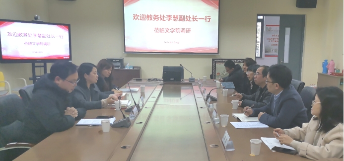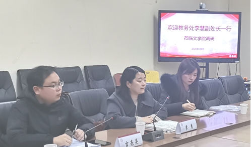 2024年3月8日下午,教务处李慧副处长、教学改革科科长吉亮亮、副科长王亚男莅临草榴 商讨荣誉学位学生培养工作。草榴 院长曹炜、院长助理陈昌强、教学督导吴雨平、汉语言文学(基地)专业负责人张蕾、2023级省拔尖学生培养基地班班主任李璐、2023级学生辅导员丁小珊、本科生教务秘书许烨麟参加本次会议。