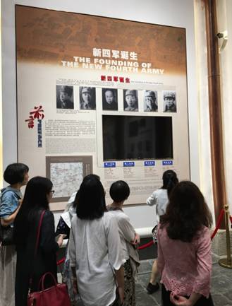 第一天下午,车辆刚到高淳。大家就一起兴致勃勃地参观了高淳新四军纪念馆。新四军第一支队司令部和新四军驻高淳办事处均位于南京市高淳老街上。新四军一支队司令部旧址原为吴氏宗祠,始建于清乾隆年间。新四军驻高淳办事处旧址建筑面积120平方米,上下二层。两处旧址都是留存完整的清代中期古建筑,四周还有清代古民居与商铺,具有深厚的历史文化底蕴。
