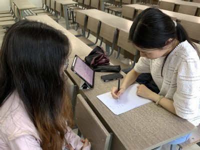 首先,主持人热烈欢迎了在场暑期社会实践团队和同学们的到来,并向同学们简单介绍了参与本次双选会的团队及其位置。紧接着,主持人宣布双选会正式开始。“上春山,雅筑行”实践团跟前同学们积极地填写着面试表格,读书地图实践团队的面试官向来面试的同学详细解释着本团队的实践目的和意义,赣工星火研创社的成员还为来面试的同学准备了小零食。同学们纷纷在心仪的团队面前咨询、介绍自身的优势长处以期加入最适合自己的岗位。一时间,场面如火如荼。