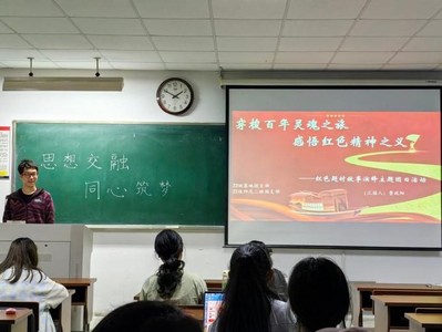 接着是22级基地团支部书记曹政阳同学汇报由22级基地团支部和22级师范二班团支部联合举办的以“穿梭百年灵魂之旅,感悟红色精神之义”为主题的团日活动。曹政阳同学指出,本次团日活动以演绎红色题材故事和红色知识竞赛为主要形式,并邀请了2024年全国大学生井冈山精神志愿宣讲团和2024年全国大学生延安精神志愿宣讲团进行宣讲。汇报结束后,评委问到该活动的创新点都有哪些,曹政阳同学回答该活动的创新点主要有四点:严肃性和趣味性相结合,活动形式丰富多样,体验感强,尊重个人意愿。