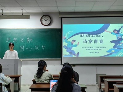参与本次交流会的共有五位团支书,首先进行汇报的是23级师范1班团支部书记庞贻凡同学。23级师范1班团支部团日活动主题为“扬我浩然正气,弘五四报国志”,庞贻凡同学从活动主题、活动背景和活动目的这三个方面展开汇报。