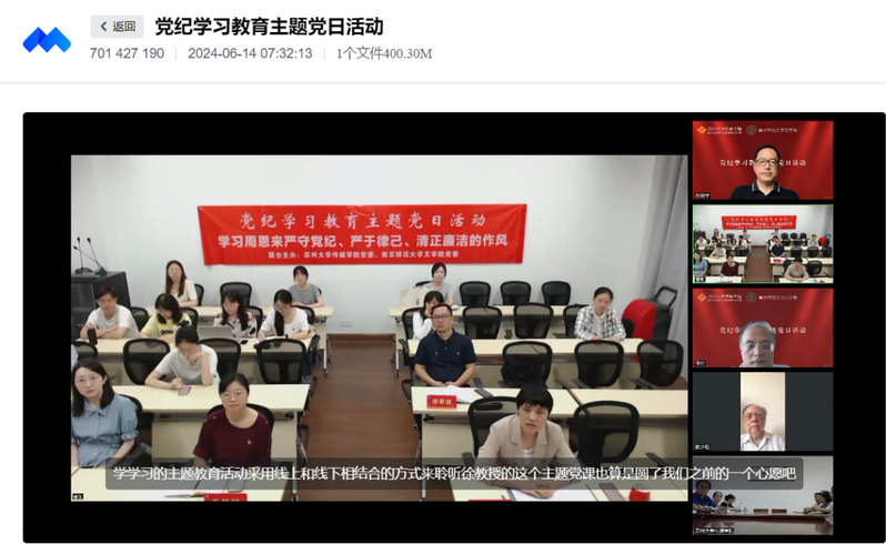 为进一步深化党纪学习教育,不断激发教师党员创新发展的内生活力,强化师德师风自警意识,6月14日,草榴 党委组织全体教工党员线上聆听由南开大学周恩来政府管理学院教授、南开大学周恩来研究中心主任徐行老师主讲的“学习周恩来严守党纪、严于律己、清正廉洁作风”的专题党课,草榴 全体教师党员参加了线上学习。