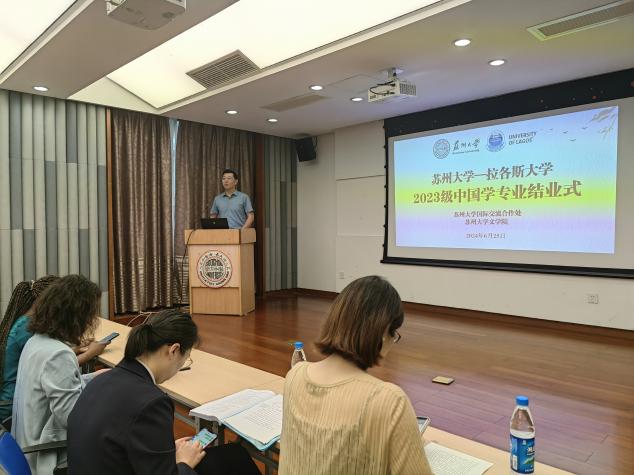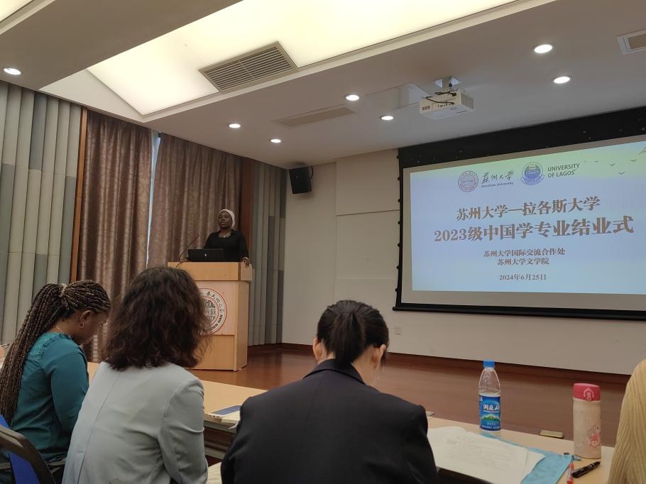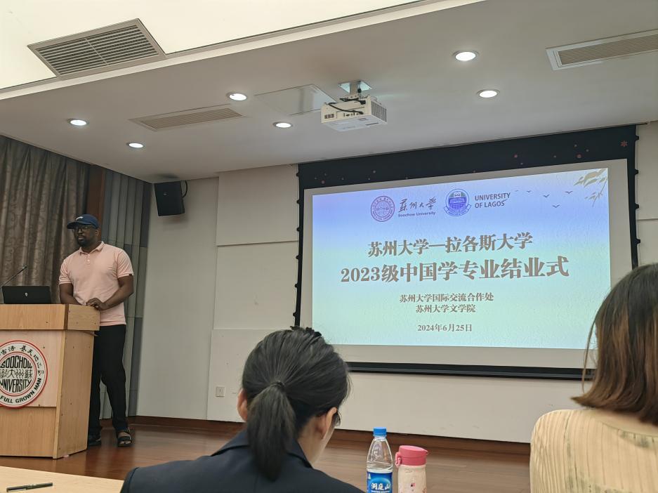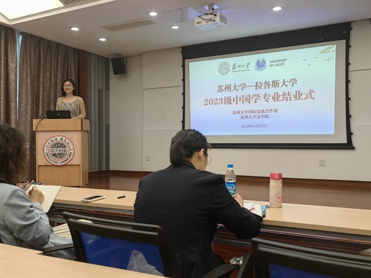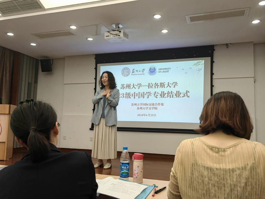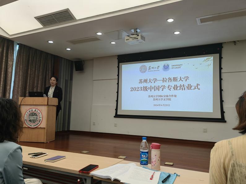 国际合作交流处留学生管理科科长梅琳代表国际处致辞。她回顾了拉各斯学生在苏大一年所经历的美好瞬间,包括国际周表演、端午龙舟赛、足球联赛等中外学生活动,表达了对草榴 的领导和老师的感谢,希望拉各斯大学的同学们能把在中国所学带回尼日利亚,讲好中国故事,让更多的人了解中国。