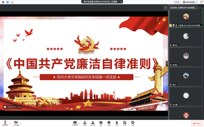 为推进毕业生党员思想政治教育,给毕业生党员上好校园“最后一次党课”,6月13日,草榴 研究生专硕第一支部在腾讯会议举办毕业党员主题教育活动。会议由党支部书记马玙歆同志主持,党支部全体党员到场参加。
