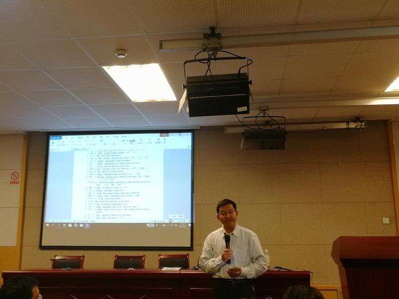 接着宗教授给出了研究教材的一些维度,第一是所依据的理念,教学原则,目标,大纲,教学模式;第二是教材编写的原则;第三是教材的会话;第四是篇章;第五是注释和翻译第六是活动和练习编写,指出这是当下对外汉语教学事业最薄弱的地方,不仅教材编写差,而且这方面研究也不足;第七是多媒体教材作为新兴的教具,已直至手机网络;第八是教材编写,指出了会话的编写的差劲,提出有的教材的会话的编写脱离日常,所用词汇虽符合大纲,却不是地道的对话中使用的词汇,并强烈推荐外国学生观看《家有儿女》。