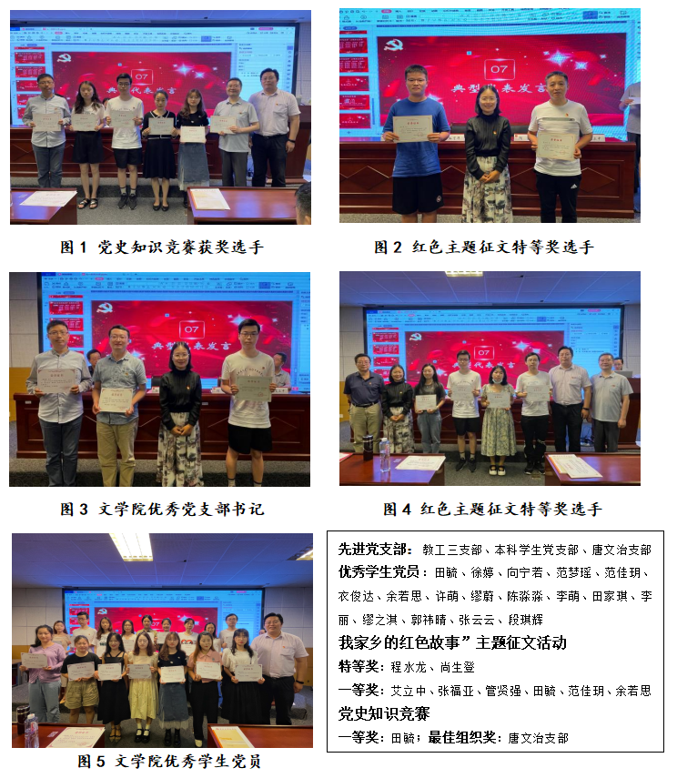在党史学习教育期间,草榴 党委在配合学校完成一系列规定动作的同时,组织了丰富多彩的活动,诸如“讲述我家乡的红色故事”征文比赛、党史知识竞赛等。广大师生党员参与热情高涨,获得了可喜成绩。接下来,党委副书记阴浩向与会人员宣读各类活动的获奖名单,随之与党委书记孙宁华、党委委员王建军与艾立中一同向获奖同志颁发证书,并合影留念。