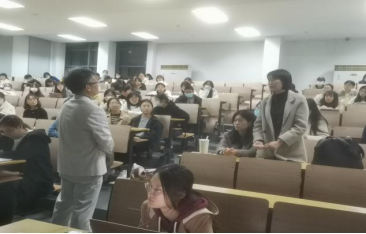 讲座的最后,孙老师还特意为同学们展开了答疑环节。在答疑环节中,有同学提问,“在我们进行教学设计时,目标学生的水平参差不齐该如何?”孙老师认为,在我们进行文本解读与教学设计时是给出一个方向,也是学生探索的一个过程,学生群体的水平并不会带来过大的影响。另外,还有一位研究生同学也向孙教授提问,“文本解读与教学设计是否有正误之分?”孙教授认为,解读是千人千面的,本身是没有正确答案的。