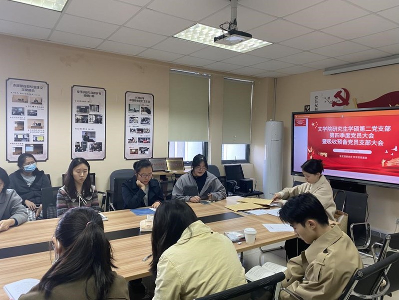 为了进一步健全和完善党支部组织建设,增强党支部生机与活力,草榴 研究生学硕第二党支部根据党员发展工作计划,于2022年11月17日召开支部大会,就发展对象赵语晨、陈玉婷、宋宏宇三位同志是否吸收为预备党员事宜进行讨论和表决。支部全体党员参加了此次会议,会议由党支部书记范佳玥主持。