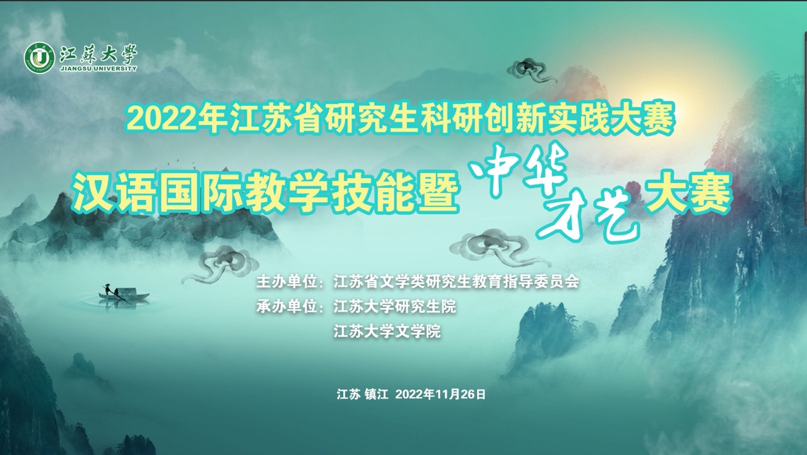 2022年11月26日,2022年江苏省研究生科研创新实践大赛汉语国际教学技能暨中华才艺大赛圆满落幕。此次赛事由江苏省文学类研究生教育指导委员会主办,江苏大学研究生院、江苏大学草榴
