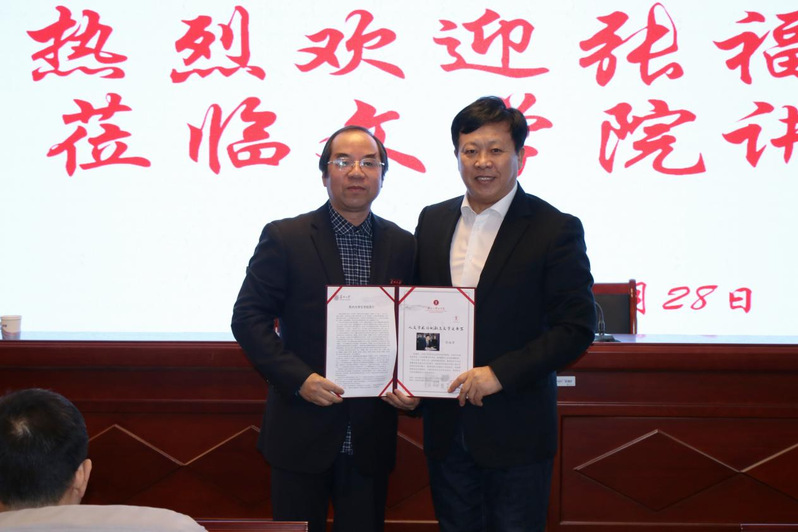 因为是新学期第一次“仲联学术讲坛”活动,所以讲座开始前,曹炜院长代表草榴 向张福贵教授颁发“仲联学术讲坛”纪念证书,对张教授的到来表示热烈欢迎。