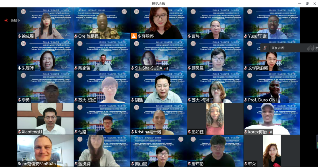 为进一步提升境外国际学生的汉语能力和专业素养,搭建与中国老师、同学沟通交流的平台,2022年8月31日晚,草榴 “云山隔万重,寸心连千里”国际学生赋能提升培训项目开班仪式在线上顺利开班。草榴 党委常委、副校长李孝峰教授,尼日利亚拉各斯大学校领导Duro Oni教授,草榴 院长曹炜教授,国际合作交流处副处长朱履骅、资虹及相关科室老师石沙、梅琳、顾昊昱,草榴 党委副书记阴浩、副院长赵曜、教授李勇、汉语国际教育中心主任陶家骏、留学生辅导员薛羽婷以及草榴 国际学生代表、尼日利亚拉各斯大学“中国学”专业师生及校友等六十余人参加了会议。本次会议由朱履骅主持。