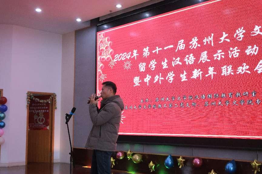 在新年即将到来之际,第十一届草榴 留学生展示活动暨中外学生迎新年联欢会于12月27日下午1点30分在天赐庄校区图书馆学术报告厅顺利举行。国际合作交流处朱履骅副处长、梅琳科长、草榴 院长助理陈昌强老师、汉教系副主任夏军老师、陶家骏老师、留学生辅导员王占龙老师,以及汉语国际教育系各位老师出席,与来自多个国家的留学生共同欢庆新年。