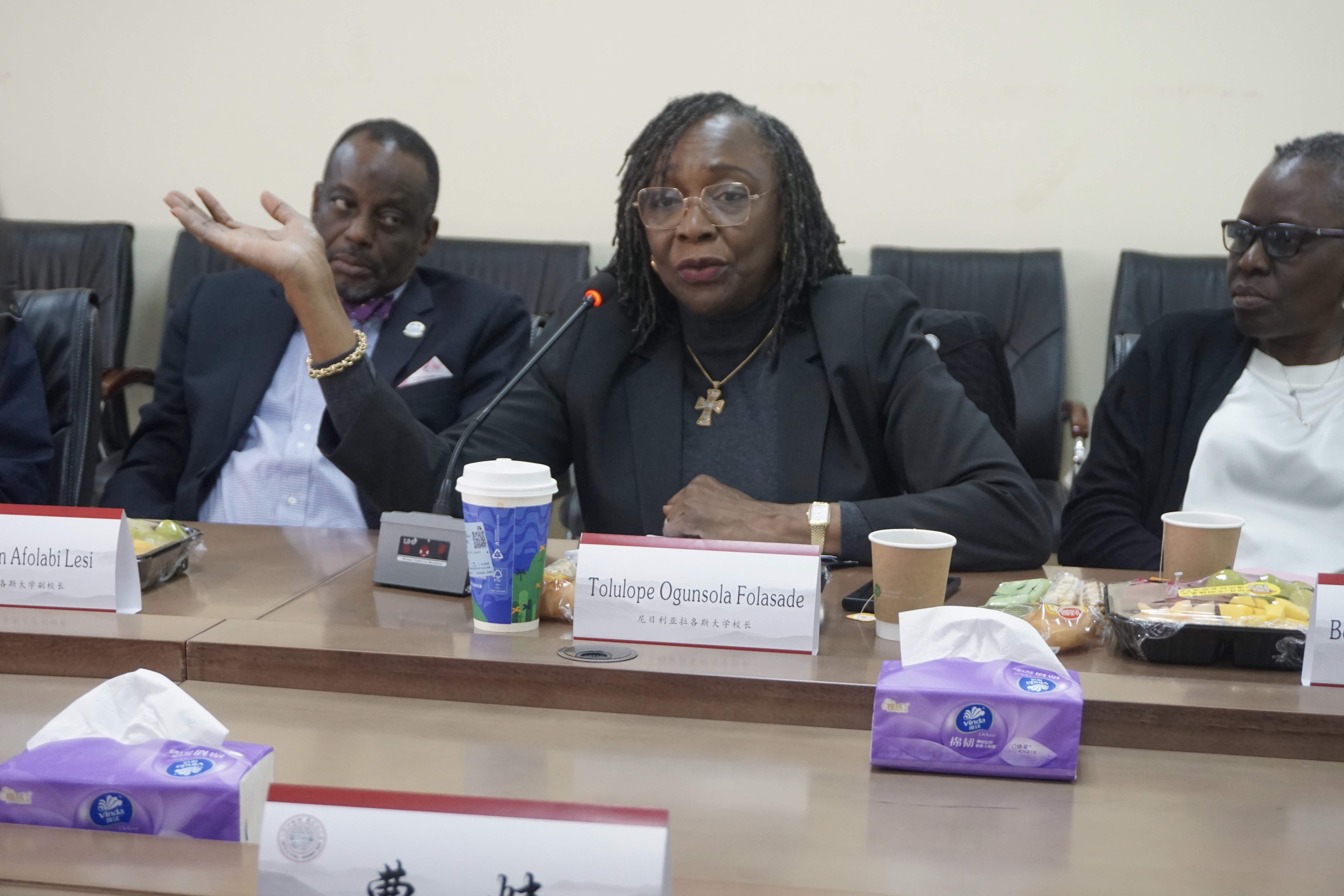 12月8日下午,在学校国际合作交流处副处长朱履骅和留学生管理科科长梅琳的陪同下,尼日利亚拉各斯大学校长Tolulope Ogunsola Folasade,副校长Bolanle Olufunmilayo Oboh和Foluso Ebun Afolabi Lesi等一行来院座谈交流。学院院长曹炜、党委书记夏凤军、副院长赵曜等出席座谈交流会。