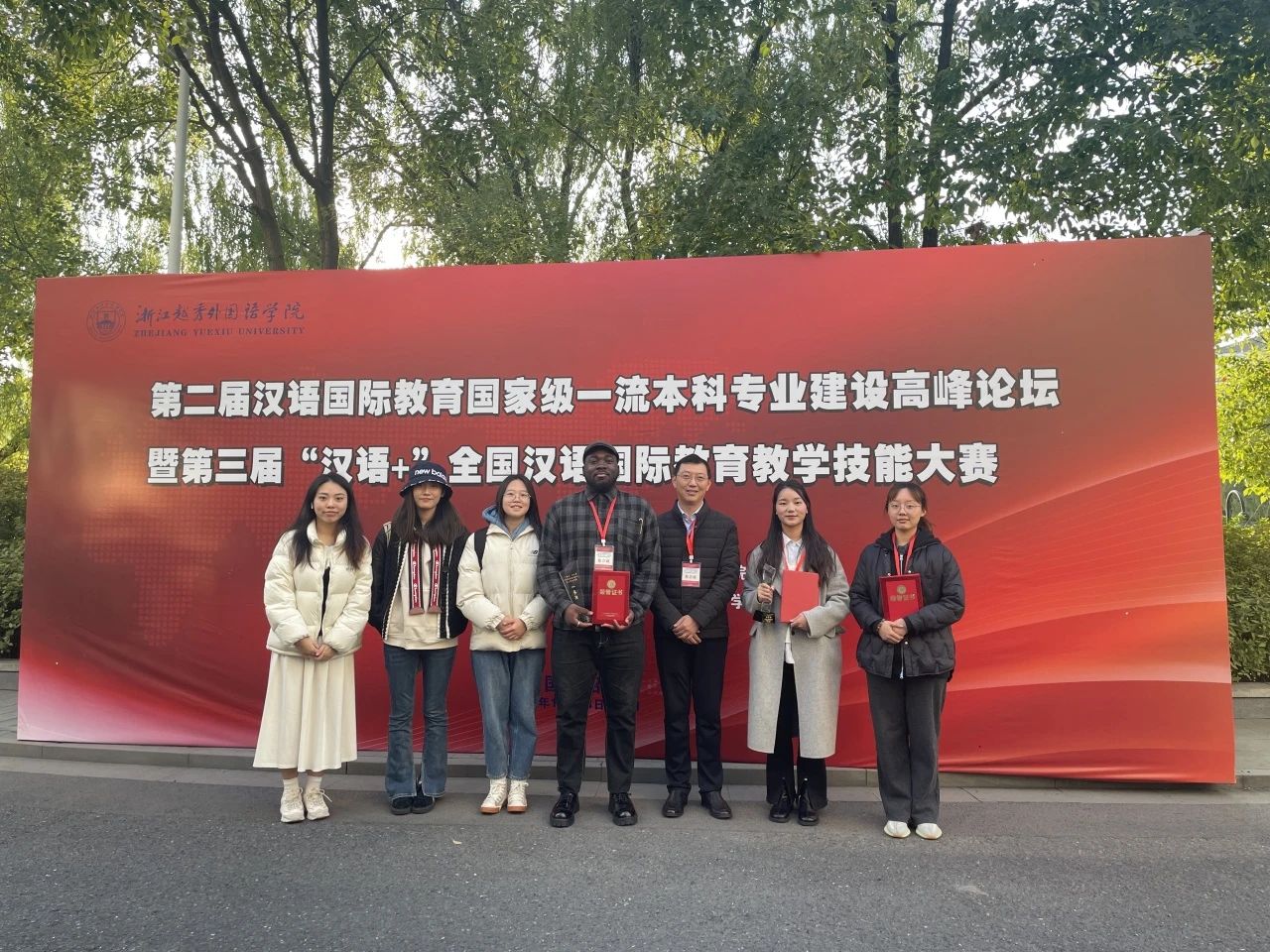 11月23日-25日,第二届全国汉语国际教育国家级一流本科专业建设高峰论坛暨第三届“汉语+”全国汉语国际教育教学技能大赛于浙江越秀外国语学院镜湖校区举行。我院汉语国际教育系主任王建军教授、教研室主任陶家骏副教授带领汉语国际教育专业三名学生参加本届大赛。参赛选手王晓凤同学荣获研究生组特等奖,尼日利亚籍学生ORE-OLUWA OLUWAFIFEHAN OSINOWO获得研究生组一等奖,高晴昊同学获本科生组二等奖。陶家骏、杨黎黎、周品老师荣获“优秀指导教师”称号。这是继前两届“汉语+”全国汉语国际教育教学技能大赛荣获特等奖、一等奖后,我院再创佳绩。