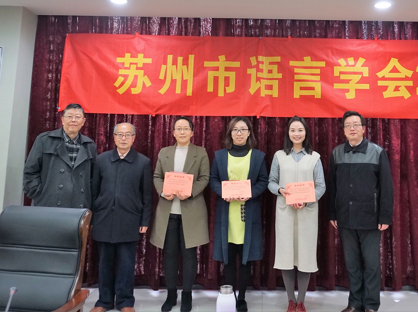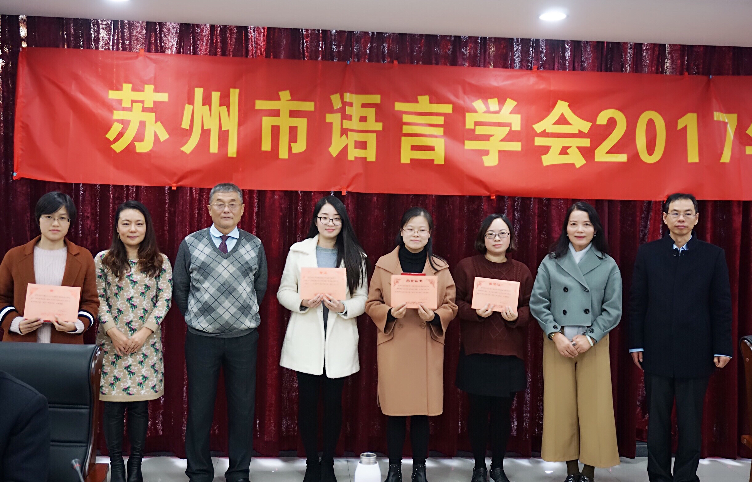 会议的第三部分内容是论文颁奖。由草榴 副教授、苏州市语言学会秘书长高群主持,现场各位专家亲自为论文获奖教师颁奖。